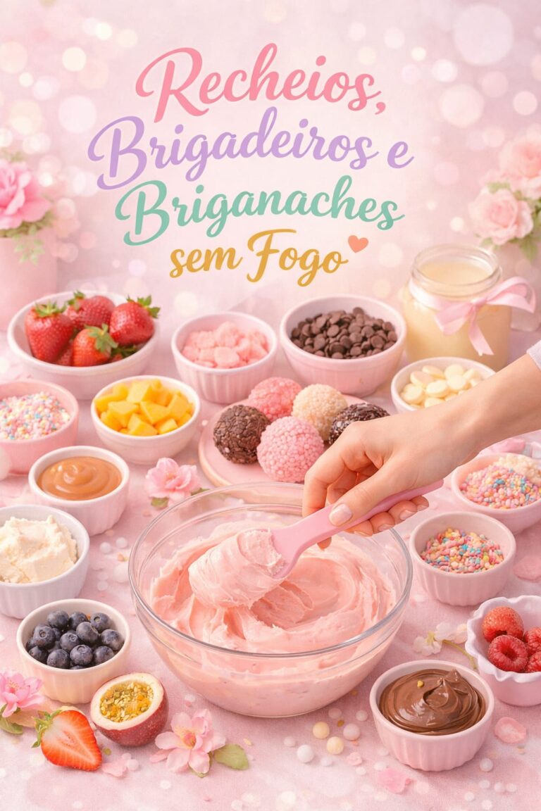 Apresento o Confeitaria Sem Fogo — um kit com 3 apostilas completas reunindo 118 receitas deliciosas que você pode preparar sem usar fogo. E mais 4 BÔNUS!!!